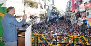 हमीरपुर ज़िला के हमीरपुर स्थित गाँधी चौक पर एक जनसभा को सम्बोधित कर रहे थे सुखविन्दर सिंह सूक्खू