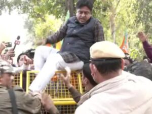 भारतीय जनता पार्टी ने किया नई दिल्ली में आम आदमी पार्टी कार्यालय के बाहर प्रदर्शन