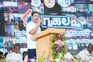राहुल गाँधी आज बोल रहे थे कर्नाटक में गृह लक्ष्मी योजना की शुरुआत करने के बाद
