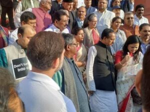 महुआ मोइत्रा की संसद सदस्यता रद्द करने पर विपक्षी साँसदों ने जमकर हंगामा किया। महुआ के समर्थन में सोनिया गाँधी समेत सभी विपक्षी साँसद संसद से बाहर आ गए।