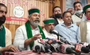 हिमाचल प्रदेश में सेब के दाम कम किए जाने की साज़िश पर एक प्रैस वार्ता में बोल रहे थे टिकैत