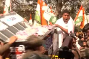 अदाणी मामले में भारतीय युवा काँग्रेस कार्यकर्ताओं ने भारतीय युवा काँग्रेस अध्यक्ष बी. वी. श्रीनिवास की अगुवाई में जमकर नारेबाज़ी की। पुलिस ने कार्यकर्ताओं को रोकने के लिए बल प्रयोग किया और काँग्रेस के कई कार्यकर्ताओं को हिरासत में लिया।